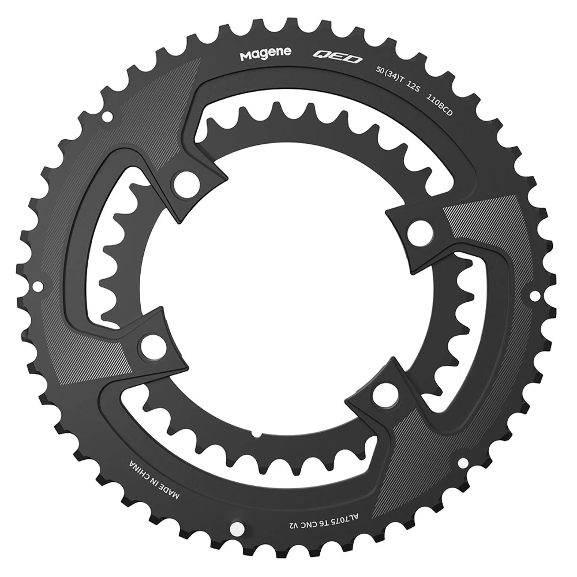 Compatible with 110 BCD 4-bolt systems, the QED chainring integrates seamlessly with Magene's P505 power meter and supports 11 and 12-speed Shimano groupsets (excluding Shimano cranksets with unique shapes).